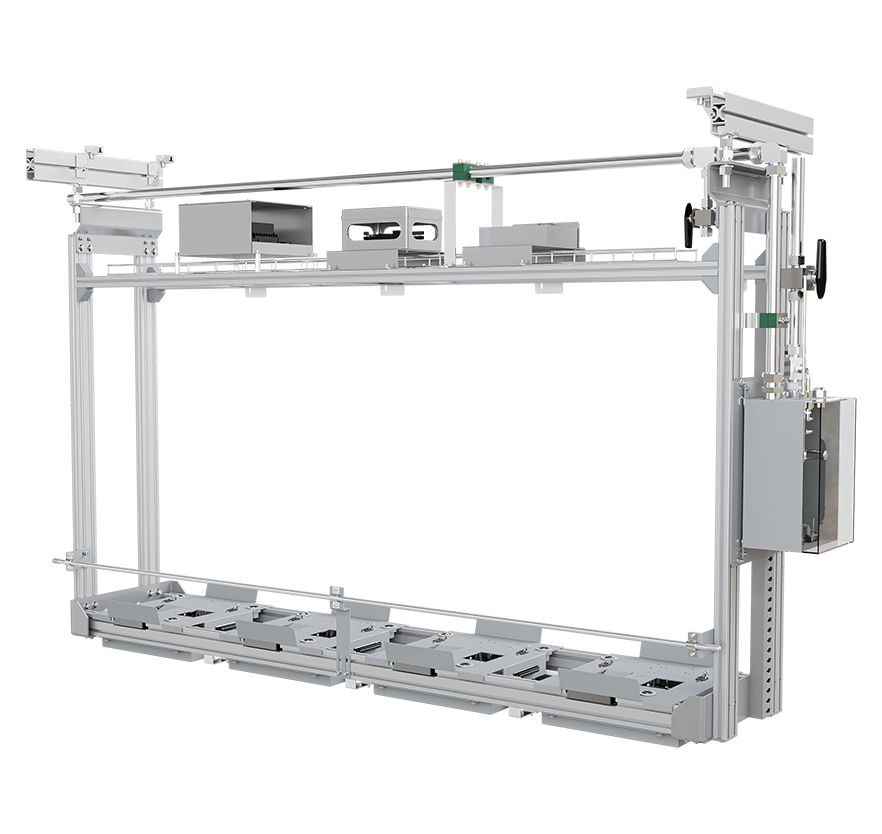 配合天车轨道系统,为光罩盒给予空中批量存储货位,提高晶圆厂得空间利用率,最大化晶圆载具在各个工序间得传送效率。顺利获得Purge管路布局,加装净化单元充入纯净气体,保证光罩盒内微环境,提高良品率。