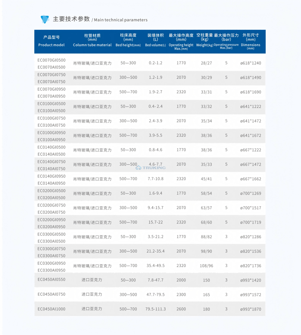 ● 专利的正压装柱方式,柱床高度高,杜绝匀浆液气泡产生,极大提高填料利用率,填料耗损低。