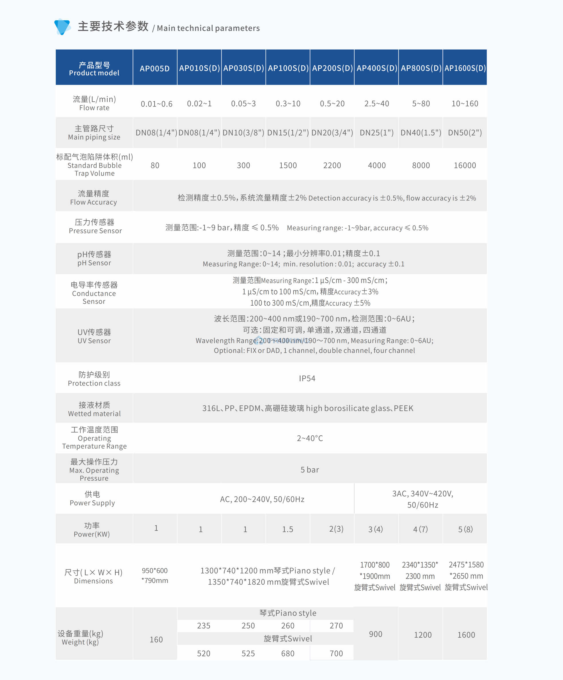 ● 多套管路可替换式设计,流量范围大,用途广泛;