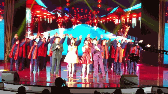 因为我们是一家人,相亲相爱的一家人,有缘才能相聚,有心才会珍惜,大合唱《相亲相爱的一家人》。