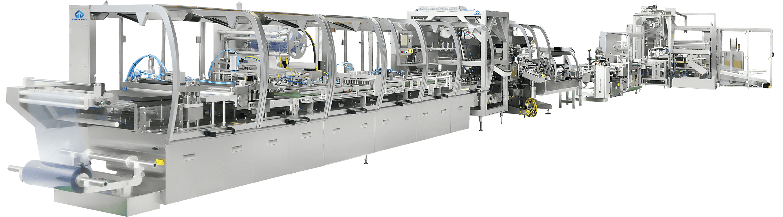 装箱码垛一体机(或自动装箱机 + 捆扎机 + 码垛机器人)