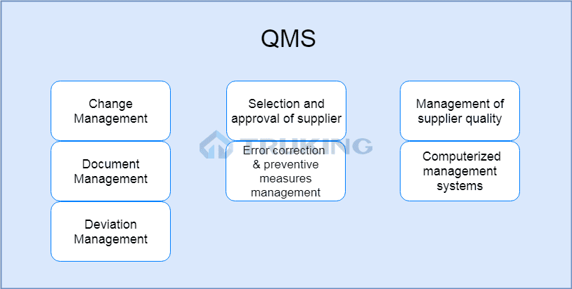 Le système de management qualité (QMS) de TRUKING inclut les fonctions de modification du procédé, gestion des documents, gestion des déviations, sélection et approbation des fournisseurs, gestion des mesures correctives et préventives, gestion de la qualité du fournisseur, gestion du système informatisé, etc. la conception du procédé d’affaire est conforme et effectif, et le risque qualité du procédé est contrôlé raisonnablement, répond à la demande des entreprises pharmaceutiques et renforce la gestion de qualité.