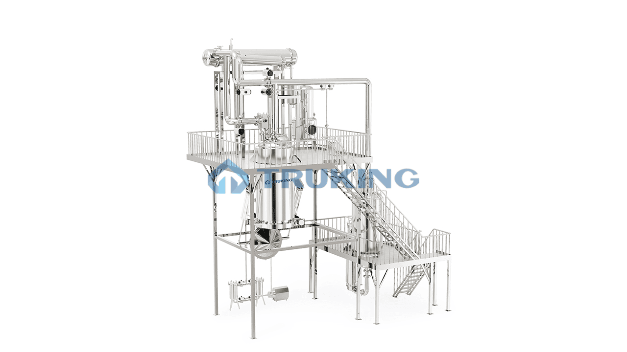 Les matières médicinales sont chauffées et extraites dans le réservoir d’extraction, et l’extraction est filtrée et entre dans l’évaporateur pour concentration. Les ingrédients actifs sont concentrés et laissés dans l’évaporateur. La différence dans le gradient de concentration du solvant en contact avec la matière dans le réservoir d’extraction est augmentée pour accélérer le taux de dissolution des ingrédients actifs dans la matière médicinale. Après que l’extraction est complétée, tous les liquides concentrés sont retenus dans l’évaporateur. Il réduit effectivement le temps d’opération de l’extraction et concentration et réserve la quantité de solvant.
