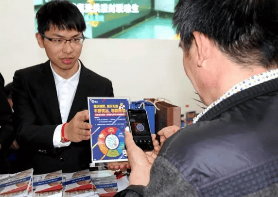 在太阳成集团tyc234cc科技的展台上,设置了多处扫码抽奖。