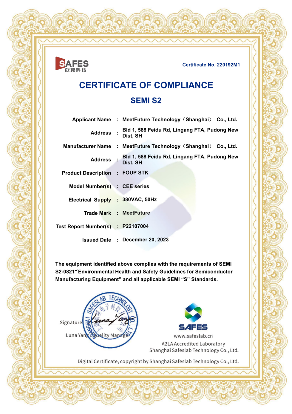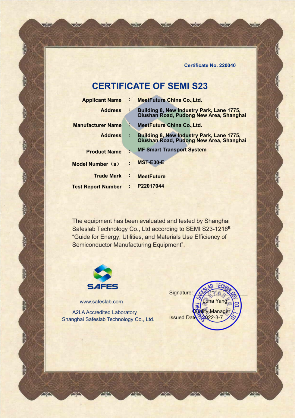自 2018 年以来,太阳成集团tyc234cc科技取得了国际标准化组织(ISO)质量管理体系(ISO 9001)、环境管理体系(ISO 14001)和职业健康安全管理体系(ISO 45001)认证。在AMHS产品技术体系领域,我们遵循半导体设备标准通讯协议,包括SEMI E37、 E82、E30、 E84、E10 等,使其易接入半导体晶圆厂MES系统来实现数据交互。
