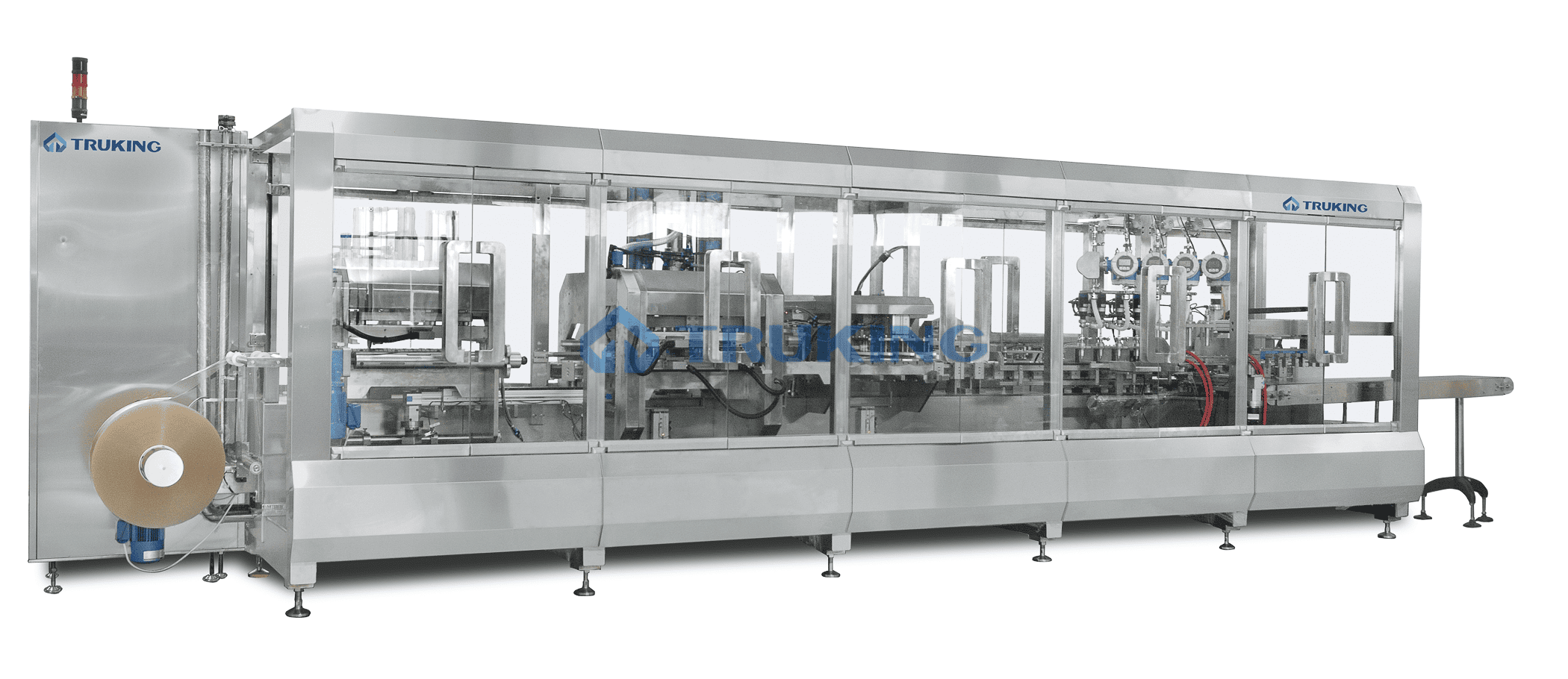 Ø Сервоприводная система с высокой точностью позиционирования рабочих станций, в том числе механизмов размотки пленки, системы дозирования, нагревательных плит, станции запечатки. Это простая в эксплуатации надежная система, не требующая сложного дорогостоящего техобслуживания.